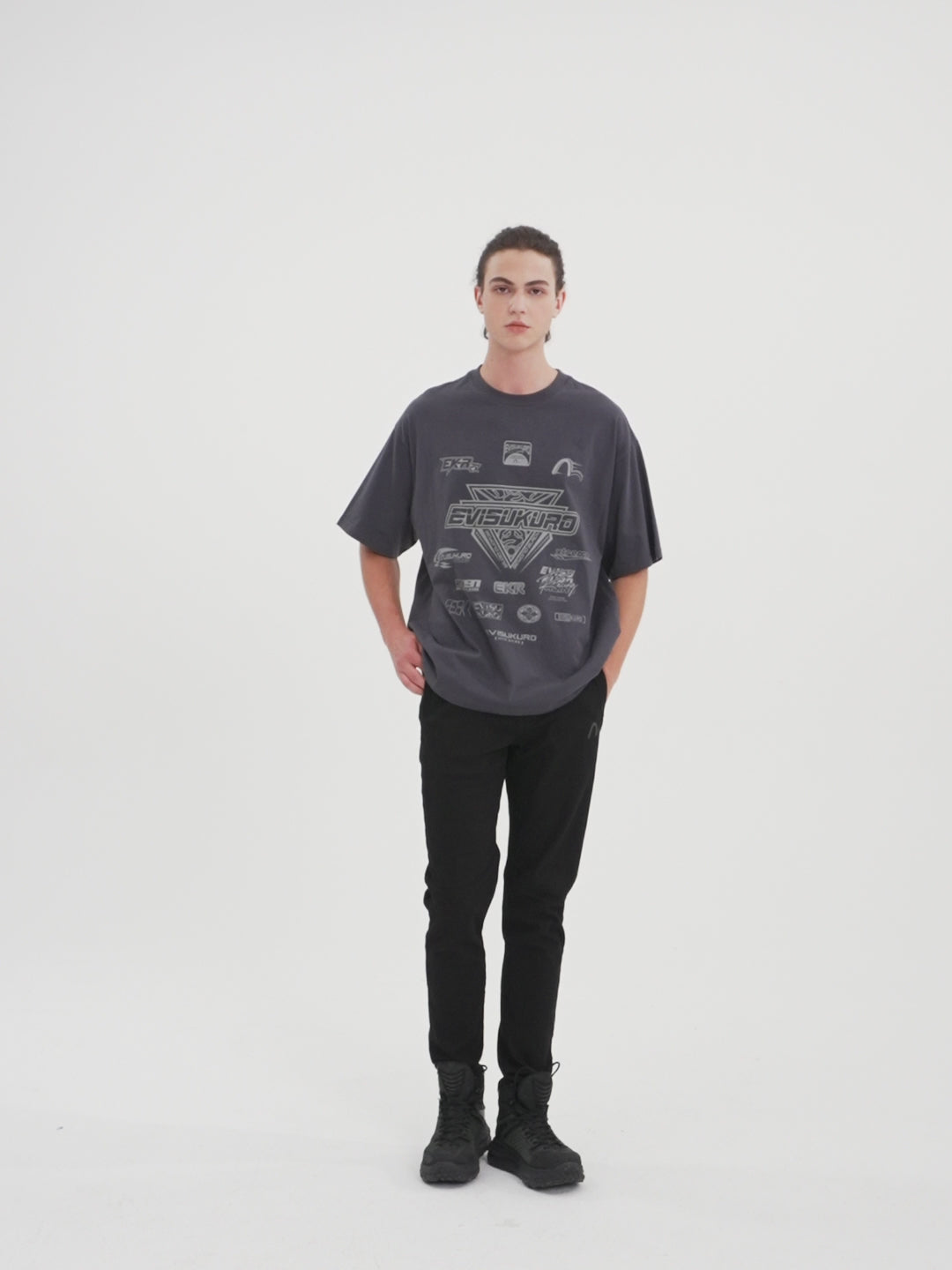 This T-shirt features a dominant EVISUKURO graphic print at the center, surrounded by an array of racing-inspired prints and EVISU's signature branding elements. The integration of motorsports motifs and the brand's distinctive style makes this tee a standout piece in your wardrobe.