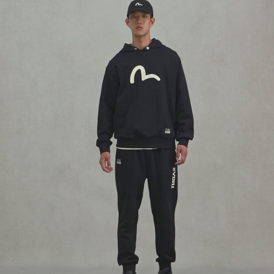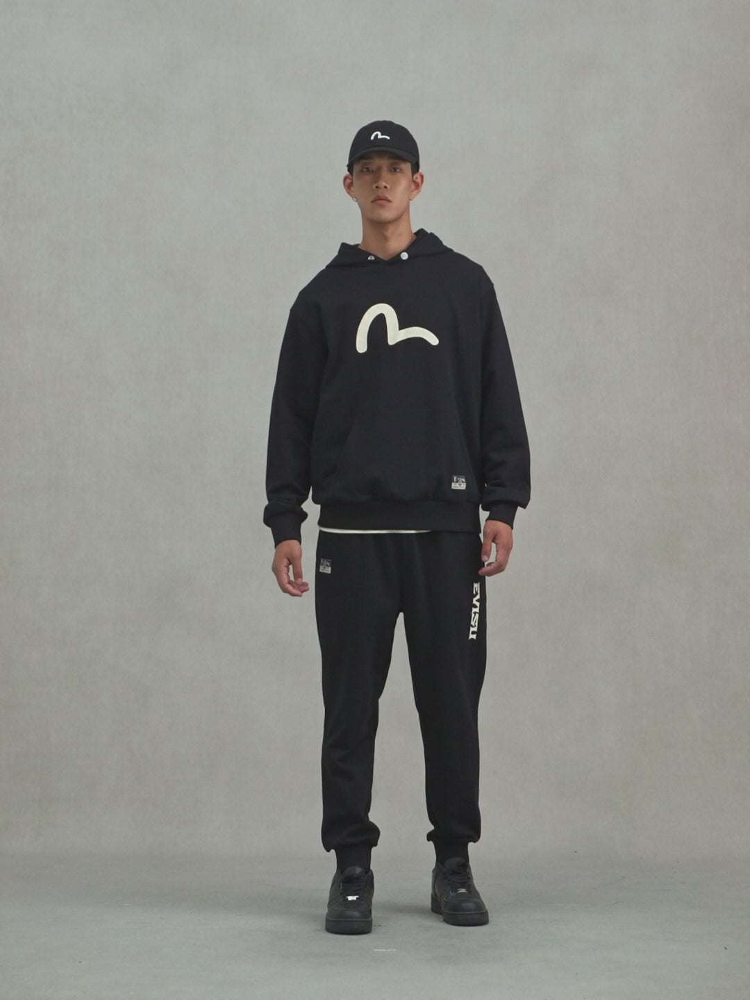 商标刺绣和仙鹤报恩大M印花常规版型运动裤